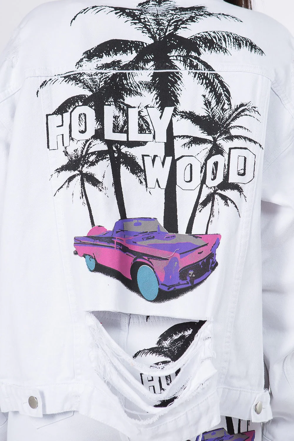 The Graphic Distressed Long Sleeve Denim Jacket is a stylish and edgy outerwear piece that adds a touch of personality to any outfit. Featuring eye-catching graphic details and distressed accents, this jacket exudes a cool and rugged vibe. The long sleeves provide extra coverage and warmth, making it perfect for layering over your favorite tops. Pair it with jeans for a double denim look, or mix it with a dress for a playful juxtaposition of styles. Stay fashion-forward and effortlessly cool with this statement denim jacket.