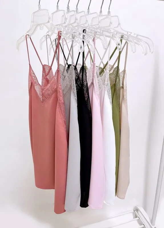 The Lace Cami Solid Tank Top is a versatile and chic piece featuring delicate lace detailing on a solid-colored fabric. The cami style offers a sleek and feminine silhouette, while the lace adds a touch of elegance and sophistication. Perfect for layering or wearing on its own, this tank top can be styled with jeans, skirts, or shorts for a polished and stylish look suitable for various occasions.