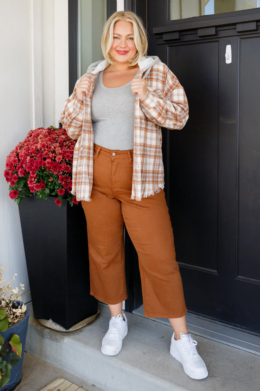 - Briar High Rise Control Top Wide Leg Crop Jeans in Camel