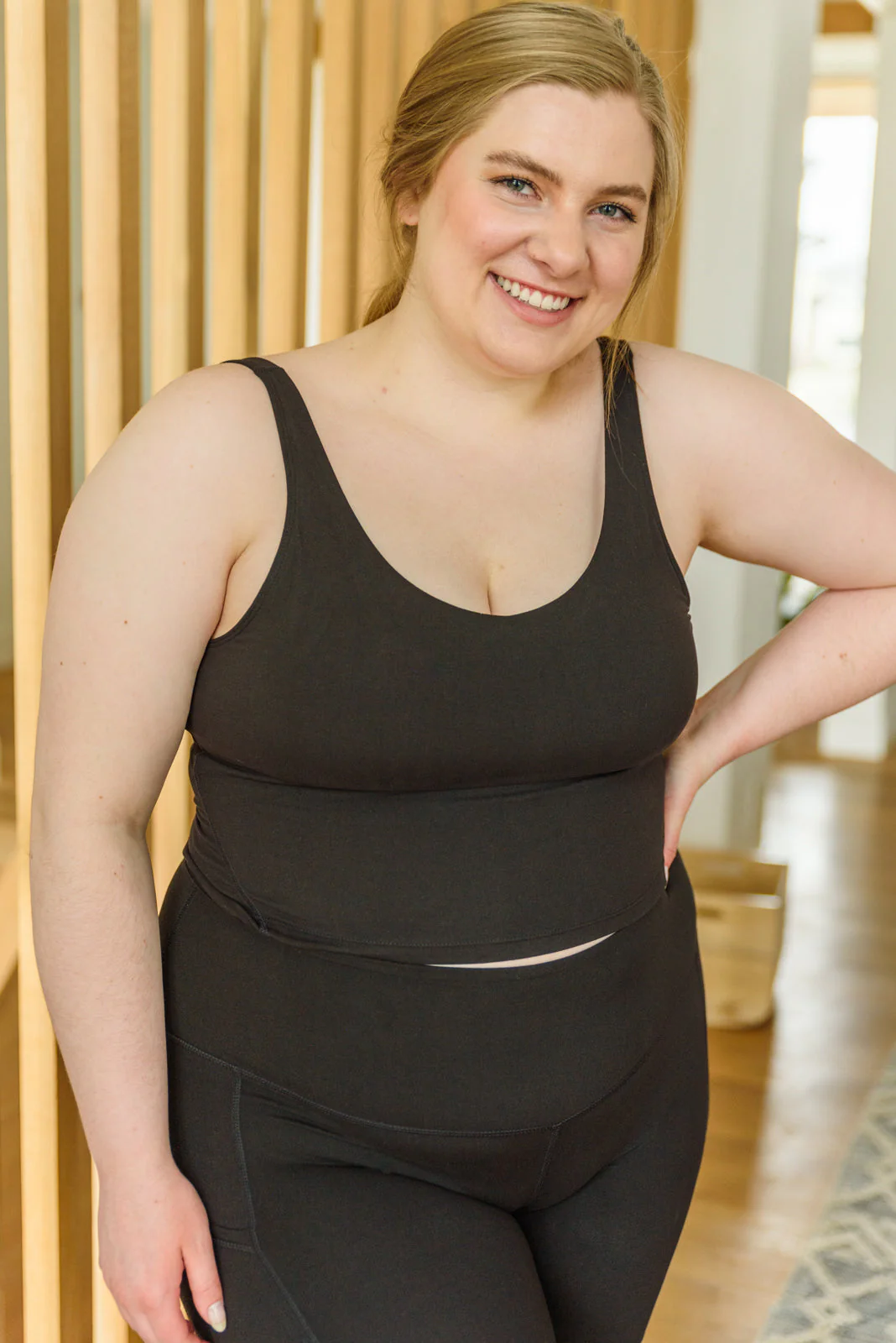 Whatever you're doing, do it comfortably in the Move With Me Black Tank! This cute tank features a buttery soft fabric, a slight v-neckline, scooped back, and a cropped length that hits right at your waistline. Pair with leggings and sneakers for a casual and comfortable look!