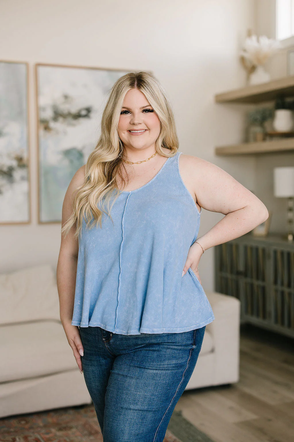 Step into summer style with the Swing Low Swing Tank! Designed with a scoop neckline front and back, it's crafted with corded ribbed knit for an ultra-comfy fit. Exposed center seams and a swing silhouette add visual interest, while the mineral washing process creates a soft hand feel. Effortless chic and unbeatable comfort!
