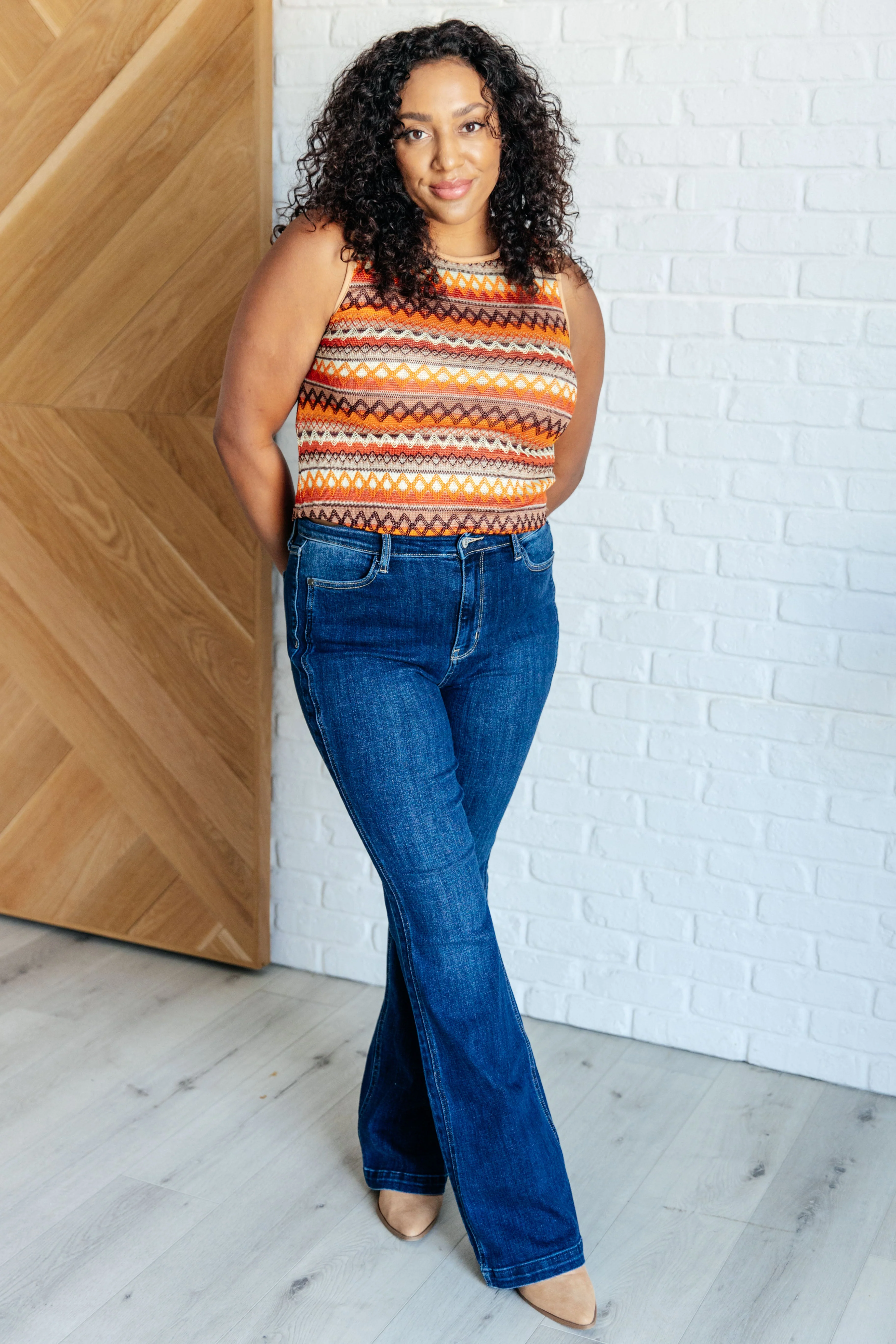Let your emotions shine in our Up in My Feelings Knit Tank. Made with a high-stretch sweater knit, this tank boasts a round neckline and a trendy tank top silhouette. The colorful geometric design adds a playful touch to this comfortable and unique piece.