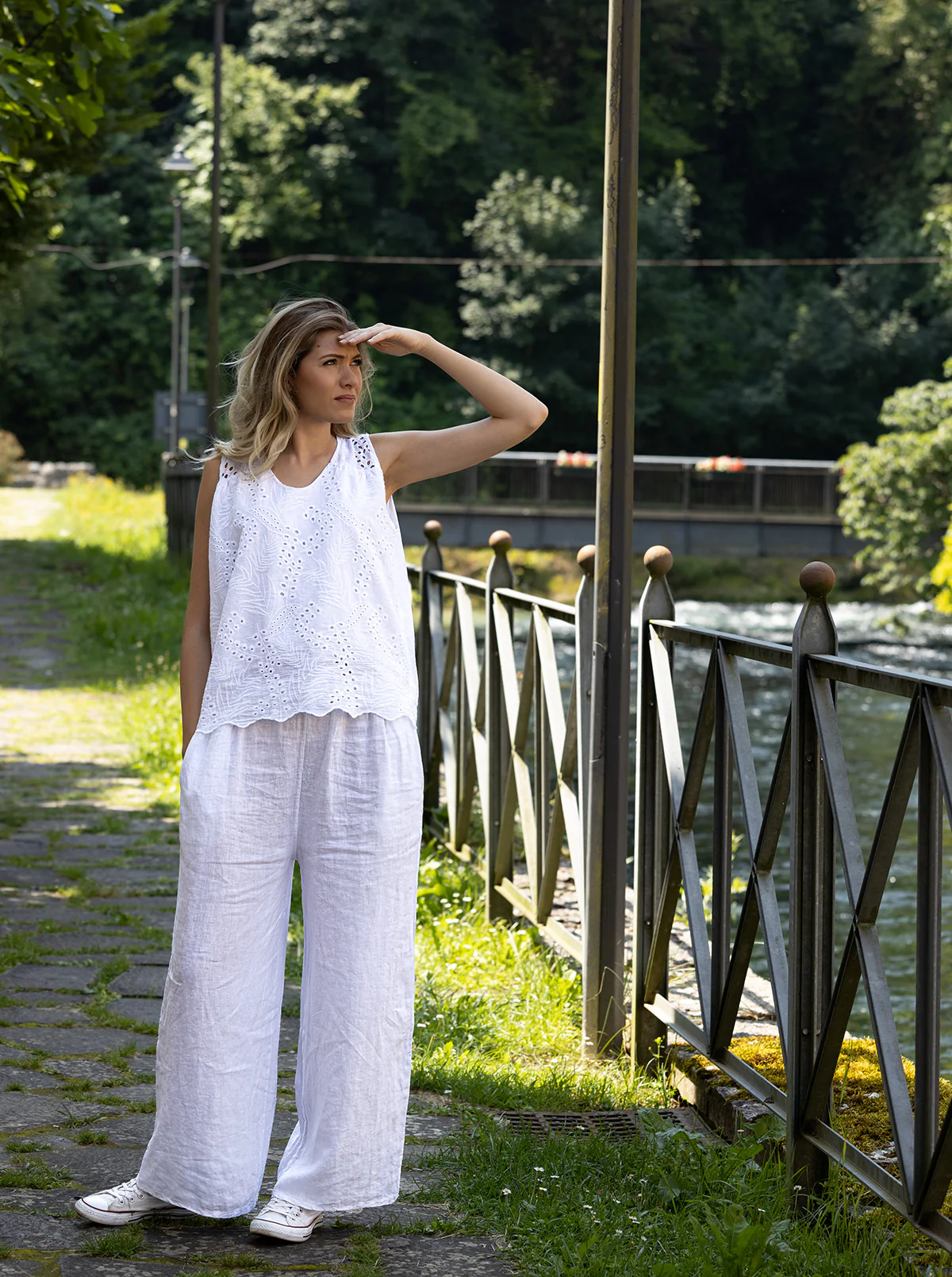 Introducing our PLAZZO WITH DRAW STRING LINEN! Made from high-quality, comfortable linen material, these palazzo pants are designed with a convenient drawstring waist for a perfect fit. Experience the benefits of both style and comfort with these versatile palazzo pants. Perfect for any occasion, from a casual day out to a business meeting, these palazzo pants are a must-have for any wardrobe.